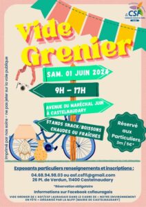 VIDE GRENIER ORGANISE PAR LE CSF le 1er JUIN A CASTELNAUDARY